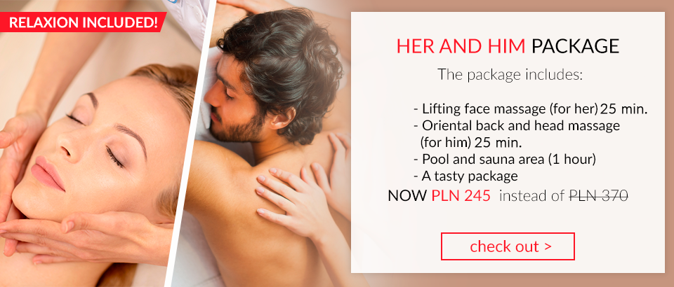Lifting face massage (for her) is an extremely relaxing cosmetic procedure covering the face, neck, cleavage, shoulders and nape. It stimulates the smoothing of wrinkles under the eyes and around the forehead, paranasal folds, lip folds. Oriental back and head massage (for him) is a wonderful moment of relaxation for relieving tense muscles of the back and head. Take advantage of the Her and Him package at Studio Sante.