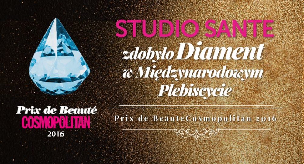 Studio Sante decyzją Jury zdobyło Diament Prix de Beaute Cosmopolitan 2016 w Kategorii Zabieg kosmetyczno-pielęgnacyjny. Międzynarodowy Plebiscyt, który od lat cieszy się ogromnym uznaniem- to wyjątkowe wyróżnienie- z jakiego jesteśmy dumni.